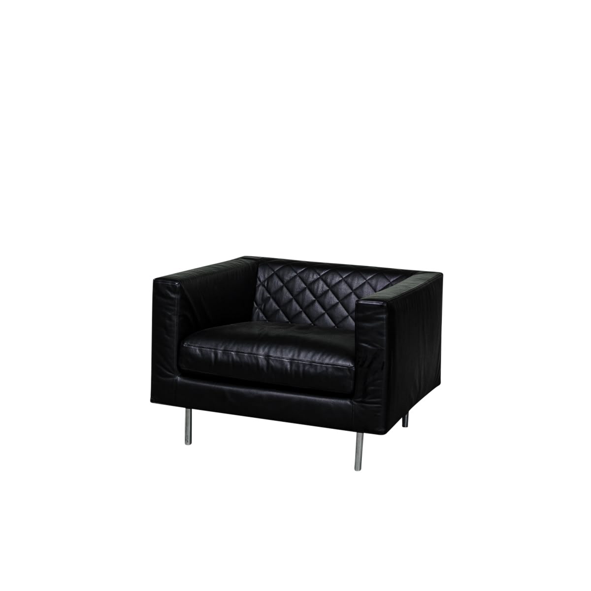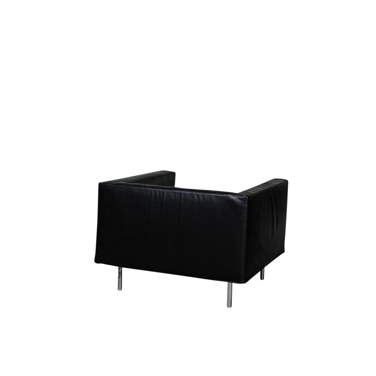 Echtleder-Sessel schwarz, mit hohen Armlehnen.
