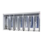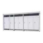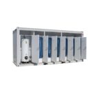 Unser 20″ Duschcontainer verfügt über 12 Duschkabinen, jeweils 6 Stück auf jeder Seite. Es sind zwei 300L Wasserboiler verbaut. Die Duschkabinen sind alle einzeln von außen zugänglich und verfügen über eine Handbrause, eine Einhandmischbatterie, einen Duschvorhang und eine Duschwanne. An den Türen sind Handtuchhalter angebracht.