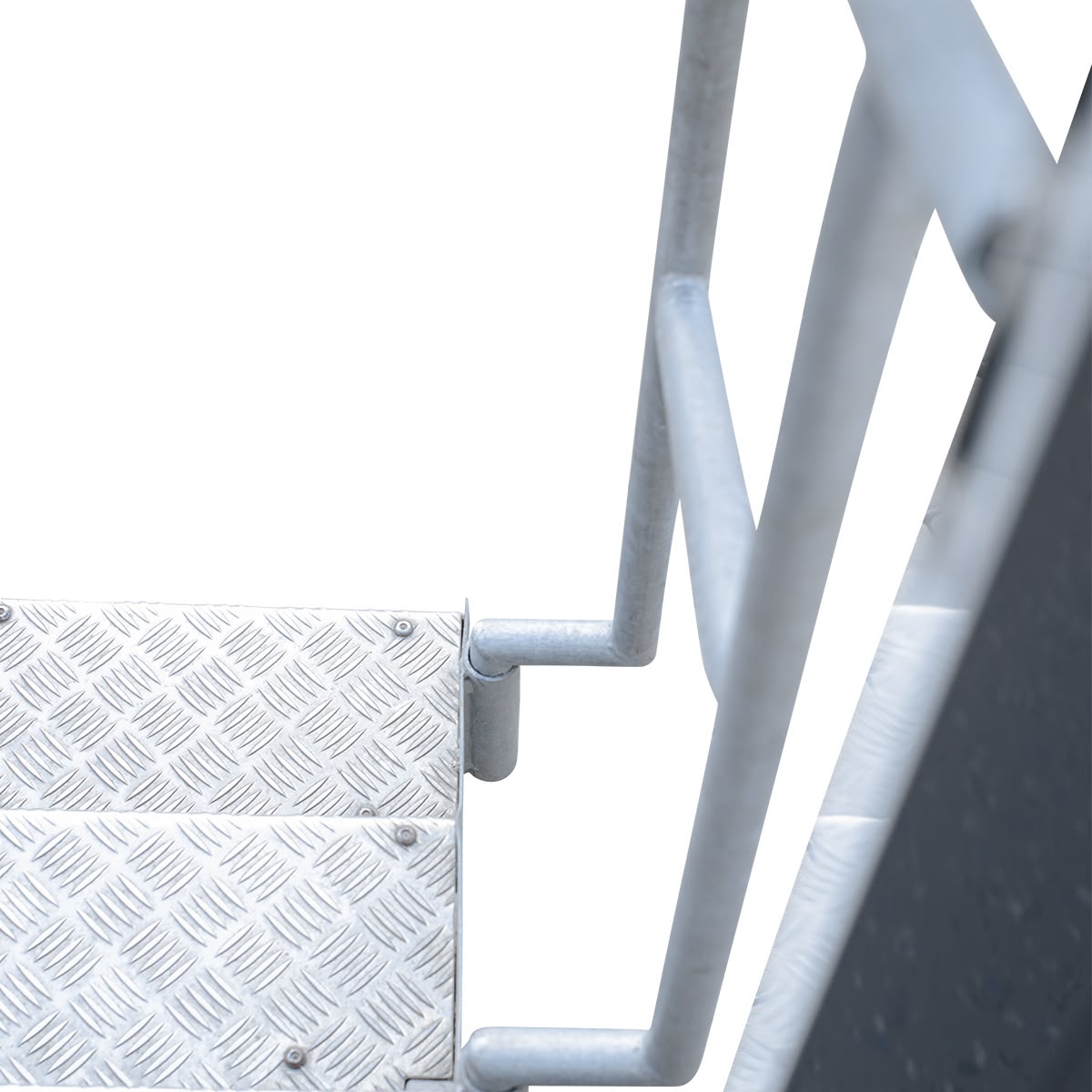 Für den sicheren Stand am Aufstellort sorgen vier Anhängerstützen, welche den Anhänger per Handkurbel in Waage bringen.